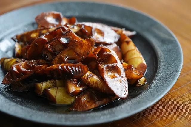 南方人制作笋干,剩下煮笋的汤汁也不舍得随便丢弃。继续加入盐和笋肉,继续慢慢地熬。时间久了,锅中的笋汤就变成了黝黑滋润的深色,跟酱油一样,这就是笋油。